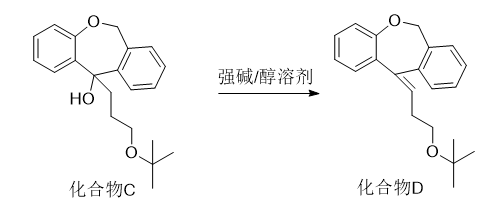 (6)向所述羟基类化合物在强碱的醇溶剂中加热进行消除反应,得到烯烃类化合物(化合物d),反应式如下,