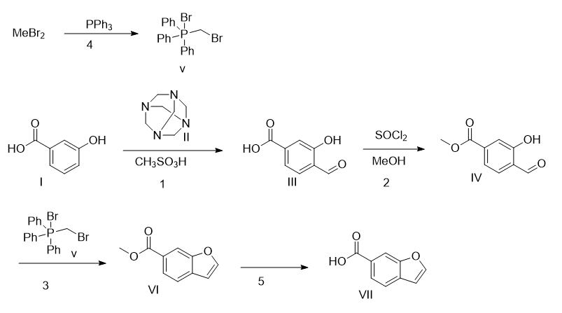并呋喃-6-羧酸,又叫6-羧酸并呋喃,属于并呋喃类化合物。该类化合物有多种良好的生理活性,具有抗肿瘤、抗菌、抗氧化等作用,受到广泛关注。