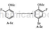 具体步骤如下:将邻氟甲醚粗产物(1.0g,7.9mmol)溶于乙腈(15ml)中,加入n-溴代丁二酰亚胺(1.4g,8.7mmol),在70℃下反应3h,tlc显示原料已反应完,蒸除大部分乙腈,加入30ml水,搅拌10min,用萃取(3×20ml),合并有机相,无水镁干燥后经柱层析分离(纯石油醚作为淋洗液),得到溴代产物,为淡黄色油状液体(1.4g,收率86%)。a-2c:δh(300mhz;cdcl3)7.23-7.16(2h,m),6.82(1h,t,j=8.7hz),3.86(3h,s);δc(75mhz;cdcl3)152.3(d,jc,f=249.0hz),147.1(d,j=10.4hz),127.2(d,j=4.0hz),119.6(d,j=21.1hz),114.6(d,j=2.2hz),111.9(d,j=8.2hz),56.4。