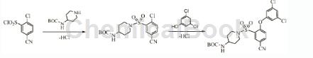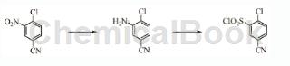 2-氯-5-氰基-1-磺酰氯可用作医药合成中间体。如发生如下反应: