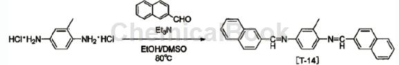 向300ml四口烧瓶中添加2,5-二氨基二盐酸盐(5.85g、30mmol)、三乙胺(6.34g、63mmol)、2-萘醛(9.84g、63mmol)和etoh(80g)、dmso(60g),一边加热至80℃一边搅拌。反应结束后,滤取沉淀物,用etoh(80ml)进行清洗,并使其干燥,从而得到[t-14](黄色固体)11.3g(收率为94%)。以下示出目标物的1h-nmr的结果。根据其结果,确认所得固体是作为目标的。