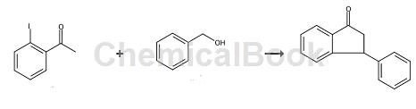 茚酮类化合物常以丙酸及其衍生物为原料在多种强酸催化下关环生成,催化剂如氯磺酸、三氟甲磺酸、三氟、多聚磷酸等,对环境污染较大、反应条件比较苛刻,缺乏稳定可靠,底物范围广泛、条件温和的合成方法。近年来,过渡金属催化α,β-不饱和羰基化合物合成茚环苄位取代衍生物的研究取得了很大进展。3-基-1-茚酮可用作医药合成中间体。