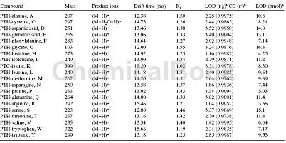 [1] rapid separation of phenylthiohydantoin amino acids: ambient pressure ion-mobility mass spectrometry (imms)