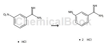 3-硝基脒盐酸盐在用氢气还原制备得到3-氨基甲脒二盐酸盐。