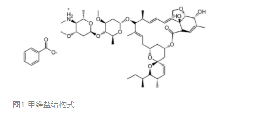 甲氨基阿维菌素甲酸盐的抗性机理研究进展甲氨基阿维菌素甲酸盐 (emamectin benzoate),简称甲维盐,结构式见图1,是1984年美国默克公司对4″-(α-1-齐墩果糖基)-α-1-齐墩果糖上的羟基进行衍生化研究的结果。甲维盐作为一种新型抗生素类生物源杀虫剂,具有广谱、高效、低毒、低残留等优点,对鳞翅目害虫具有良好的杀虫效果,甲维盐对一些鳞翅目昆虫的lc90值范围在0.002~0.89 mg/l。与其先导化合物阿维菌素相比较,甲维盐的毒性更低,对大鼠的毒性仅为阿维菌素的1/6,常规剂量下对人、畜等安全,且易降解。