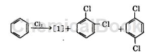 方法1:在铁催化剂作用下,进行氯化,:在反应过程中除氯[1]生成外,还同时生成二氯,因氯的密度较二氯小,且生成量较多,故可利用重力使之分离,再将分离出来的粗制氯进行精馏精制。反应可在气相中进行,反应温度为400~500℃。也可在液相中进行,反应温度为40~60℃,将氯气慢慢通入中,在催化剂作用下反应,未反应氯气被回收。