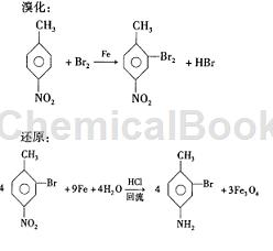 300 ml三颈烧瓶中,投人150 g h 2 o、385g铁粉、55 g盐s酸,剧烈搅拌,升温至回流,30 min 后分 3- 4 次加人 350 g粉碎的 2-溴- 4 -硝基,每次间隔 10 min,回流反应保持 5h,水汽 蒸馏得 2-嗅-4-氨基,收率为 74.7 %。