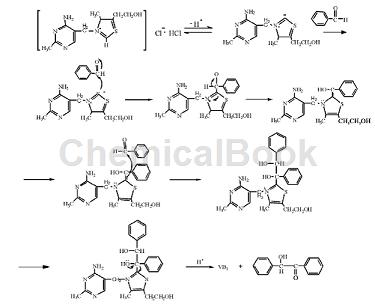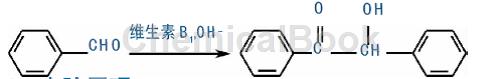 2. 安息香缩合反应。安息香缩合或偶姻反应是合成1,2-二基羟乙酮的方法。在化学工业和药物合成等方面都有广泛的应用。如抗癫痫药物二基乙内酰脲的合成以及二基乙二酮、二基乙二酮肟,安息香等制备都用到这个反应。所以,深入研究安息香的缩合反应,对提高产率、扩大应用、具有理论和现实的意义。经典的安息香合成以氰化钠或氰化钾为催化剂,虽然产率高,但毒性很大,既破坏环境,又影响健康。维生素b1 催化的辅酶合成,解决了这个问题,具有良好的发展前景。