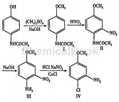 4-氯-3-硝基甲醚是合成类风湿关节炎治疗药物艾拉莫德(t-164)的主要原料,在国内还没有工业化生产,主要依赖进口,其传统合成方法主要是以对硝基甲醚为原料,经还原、乙酰化、硝化、水解、重氮化氯代5步反应制得,但由于反应条件苛刻,原料来源,收率低等问题,不适宜工业化生产,本文参考其他文献对工艺作了改进,选择以常见、廉价的药物扑热息痛(对乙酰氨基酚)为起始原料,经甲基化、硝化、水解,重氮化氯代4步反应制得,该工艺路线原料来源容易、步骤少,完全可以工业化生产。