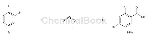 corbett等报道了将2,3-二溴碘在-100℃的条件下与丁基锂和二氧化碳反应制备2,4-二溴甲酸,收率达到91%。