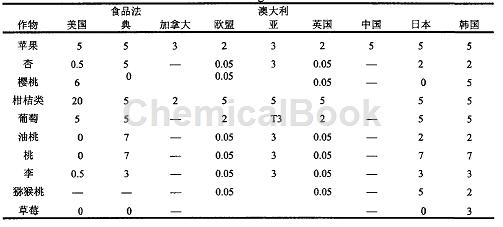 杀螨剂有效减少了害带来的经济损失,提高了作物的产量和和品质,但是由于近年来杀螨剂种类层出不穷,非植源性杀螨剂具有不同程度的毒性,生产者操作欠规范,也给人体健康和环境安全带来了隐患,农药残留问题日益受到关注。越来越多的国家和国际组织已经为此加强对杀螨剂残留的监测,并制订了严格的限量标准。日本肯定列表对丁锡在苹果、杏、櫻桃、柑洁类、葡萄、桃等多种水果做出了限量规定。