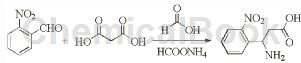 具体步骤如下:将邻硝基甲醛(20.4 g, 0.135 mol)、甲酸(20.3 ml, 0.539 mol) 和丙二酸(18.3 g,0.176 mol) 在 45 °c下搅拌半小时,然后向其中加入甲酸铵(21.3 g,0.338 mol),反 应温度升到 70 °c搅拌一小时,然后再在 95 °c下搅拌四小时后加入浓盐酸(50 ml) 并保持此温度继续搅拌一小时,冷却,加入 25ml水,用(2x25ml)洗两 次,水相用 50%的氢氧化钾溶液调 ph为 4.2,析出固体抽滤,真空千燥,得到黄色固体 18.33 g,收率 64.6%。