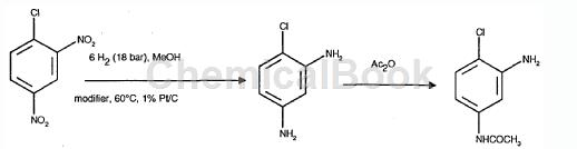 芳族硝基化合物的催化氢化是工业上重要的反应,例如用于制备农业化学品,染料和荧光增白剂的中间体。为了制备二乙烯荧光增白剂,例如,必须将4,4'-二硝基二乙烯-2,2'-二磺酸还原成4,4'-二氨基-二乙烯-2,2'-二磺酸,通过经典的还原方法或通过催化氢化来实现。3-氨基-4-氯乙酰胺可用作医药合成中间体,3-氨基-4-氯乙酰胺的制备可以以相应的硝基化合物来制备,芳香族硝基化合物对相应芳香胺的分析氢化通过几个中间阶段进行,其中重要的是形成的羟胺中间体,芳基羟胺也被称为强致癌物,因此在中断或不完全氢化的情况下构成高危险潜力。因此需要选择一种杂质少、产率高的制备方法。如果吸入3-氨基-4-氯乙酰胺,请将患者移到新鲜空气处;如果皮肤接触,应脱去污染的衣着,用肥皂水和清水彻底冲洗皮肤,如有不适感,就医;如果眼晴接触,应分开眼睑,用流动清水或生理盐水冲洗,并立即就医;如果食入,立即漱口,禁止催吐,应立即就医。