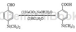 取对二甲氨基甲醛149g(1mol)溶于600ml中,保持体系温度在5~10℃后,加入6.5gkh2po4和100ml水,搅拌中滴加naclo2(1.35mol,122.2g)和1000ml配成的水溶液,1.5h滴加完毕,然后再保温3h,搅拌后升温至25~30℃,