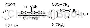 光引发剂eha (对二甲氨基甲酸异辛酯,商品名为escalol507)是一种良好的uvb区的紫外吸收剂,其紫外大吸收峰为311nm(乙醇溶液)。作为抗紫外线有效成分,在国外被广泛使用在防晒化妆品上,用量极大。美国fda将含有该产品成分的防晒霜列为类推荐的化妆品。当前随着我国的防晒霜产品市场逐年持续快速发展,每年都需从国外进口对二甲氨基甲酸异辛酯(光引发剂eha)原料用做工业品的抗老化剂。因此,开展对二甲氨基甲酸异辛酯(光引发剂eha)的合成工艺研究具有较强的现实意义,而且也有助于实现产品的国产化。