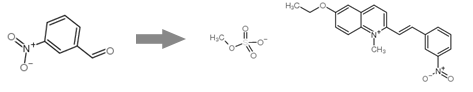 以间硝基甲醛为原料,合成6-乙氧基-1-甲基-2-(3-硝基乙烯基)喹啉甲酯盐,反应方程式如下: