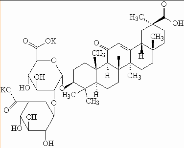 甘草酸二钾以甘草为原料,用水抽提后加氢氧化钾或碳酸钾进行完全中和而得。