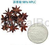 莽草酸(shikimicacid)是抗禽流感药物磷酸奥司米韦(商品名:达菲)和抗肿瘤药物二恶霉素、乙二醛酶抑制剂等的合成原料。莽草酸是一种存在于天然植物如八角茴香和一些裸子植物中的环状有机酸,它是中药木兰科植物八角茴香中的主要活性成分。经过多年的研究表明它具有溶解血栓、镇痛和抗肿瘤等作用作为化学合成的中间体,莽草酸不仅常用于镇痛、抗癌及抗血栓药物,还用于合成杀虫剂和抗菌剂。