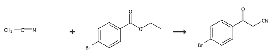 在氮气氛下,在室温下向乙腈(7.78g,190mmol,9.97ml)和无水四氢呋喃(300ml)的混合物中分批加入氢化钠(6.05g,151mmol),然后将3-溴甲酸甲酯(25.0g,116mmol)加入到混合物中,并将得到的混合物加热至77℃并搅拌2小时。完成后,将反应冷却至室温,并将盐酸溶液(1n,400ml)加入反应中,用(4×250ml)萃取水层,有机层用碳酸氢钠(1.0l)洗涤,用钠干燥,并真空浓缩,得到标题化合物4-溴甲酰乙腈。1hnmr(400mhz,cdcl3)δ=8.07(brs,1h),7.94-7.76(m,2h),7.44(t,j=7.6hz,1h),4.10(s,2h)。