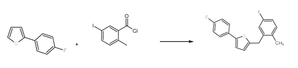 制备2-(4-氟基)-5-[(5-碘-2-甲基基)甲基]噻吩具体反应步骤如下: