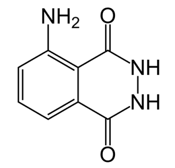 鲁米诺的化学名称为3-氨基二甲酰肼(3-aminophthalhydrazide)。常温下是一种黄色晶体或者米黄色粉末,是一种比较稳定的人工合成的有机化合物。