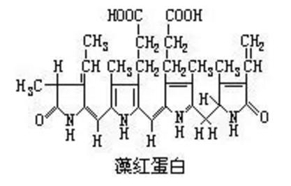 藻红蛋白具有很好的吸光性能和很高的量子产率,在可见光谱区有很宽的激发及发射范围。以下是藻红蛋白的显色基团结构: