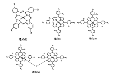 1. 用于制备邻硝基甲醛。以邻硝基为原料,选用通式(i)结构的 金属酞菁、通式(ii)、(iii)结构的单核金属卟啉或通式(iv)结构的μ-氧双核金 属卟啉中的任何一种作为催化剂,式中,m1、m2、m3、m4、m5为过渡金属 原子,m1=fe、co、cu、zn,m2=fe、mn、co、cu、zn,m3=fe、mn、 co,m4和m5可以相同,也可以不同,相同时,m4=m5=fe、mn、co,不 同时,m4=fe,m5=mn或m4=fe,m5=co,r可以是羧基也可以是氢, r1、r2可以是氢,卤素,硝基,羟基,烷氧基,配位基x为氯,催化剂的用 量为邻硝基重量的0.2~1.0%,以甲醇为溶剂,在3.0~6.0mol/l强碱性 甲醇溶液中,通入0.8~3.0mpa地氧气,控制反应温度为25~60℃,反应时 间6~48h,得到邻硝基甲醛粗品。采用常规方法分离、提纯后,得到邻硝 基甲醛精品。通式(i)、、(ii)、(iii)、(iv)结构分别如下: