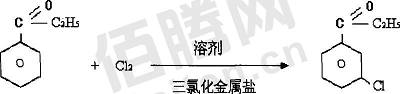 方法2:采用对丙酮的氯化获得3’-氯丙酮,该方法所用到的化学品有: 丙酮、三氯化金属盐、溶剂a、氯气cl2,其中溶剂a为既能溶解丙酮又能 混溶三氯化金属盐,其反应方程式为: