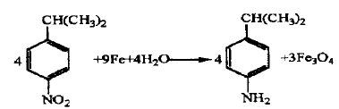 以异丙为起始原料,在浓介质中均相硝化,得到硝基异丙混合物。反应混合物经铁粉还原、分离,得到含量≥97%的对异丙基胺。该反应硝化收率72.4%,还原收率92.3%;分离收率93.6%,总收率62.6%。