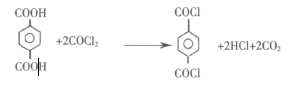 以二甲酸与固体光气为原料, 在1,2-的有机溶剂中进行催化反应,催化反应时间为2-5 h。以氯化、水解后得对二甲酰氯、间二甲酰氯、乙酮及副产物邻羧基甲醛混合物。废聚酯饮料瓶裂解制备对二甲酰氯以废弃pet 降解产物对二甲酸乙二醇酯为原料, 以氯化亚砜为氯化剂制备对二甲酰氯。国内还报道相转移催化法快速合成对二甲酰氯、三相转移催化合成对二甲酰氯。