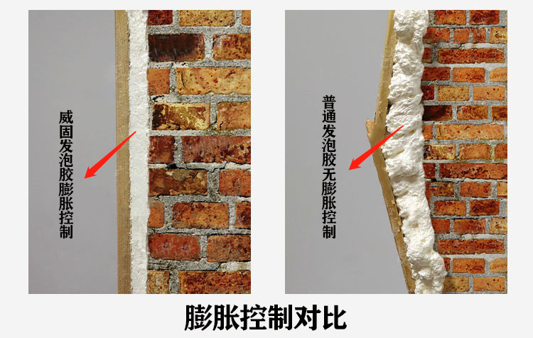 前发泡即发泡胶喷出来后80%已经发泡,后面发泡幅度很小,这样让工人在使用发泡胶的时候就能很好的掌握手上的力气,简单便捷且不浪费胶,大大节约了成本。如果发泡胶的后膨胀系数过大,可能会导致门窗变形、撑坏门窗的隐患,后续清理起来也比较麻烦。因此对于木门安装,建议使用前发泡型的发泡胶,不要使用后膨胀系数很高的发泡胶去施工。