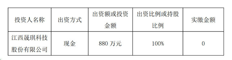 晟琪科技(839605)还发布公告称,因战略规划及业务发展需要,拟在江西省赣州市寻乌县分别投资880万元设立2家全资子公司,公司名称拟定为江西晟之源再生资源有限公司和江西晟越工贸有限公司。