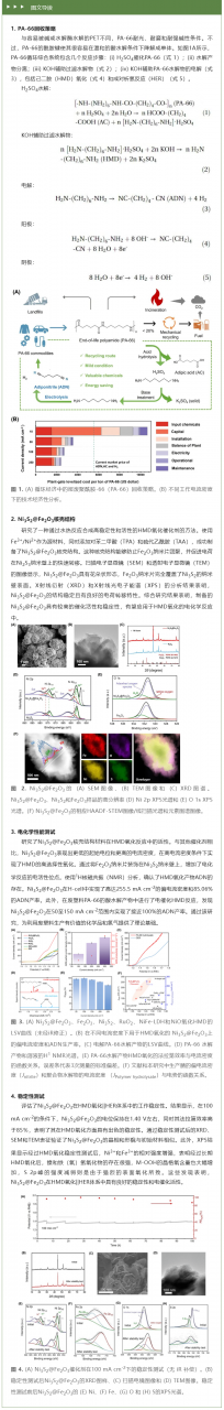 rhe)下产生的adn的法拉第效率>85%。同时,氢气在阴极产生。ni3s2@fe2o3的独特核壳结构增强了其电化学性能。x射线光电子能谱(xps)也表明,形成的ni(fe)氧(氢氧化物)物种可能是c-n键脱氢的真正活性物种。该策略为pa-66废料可持续地生产高价值商品化学品和清洁h2燃料提供了新思路。