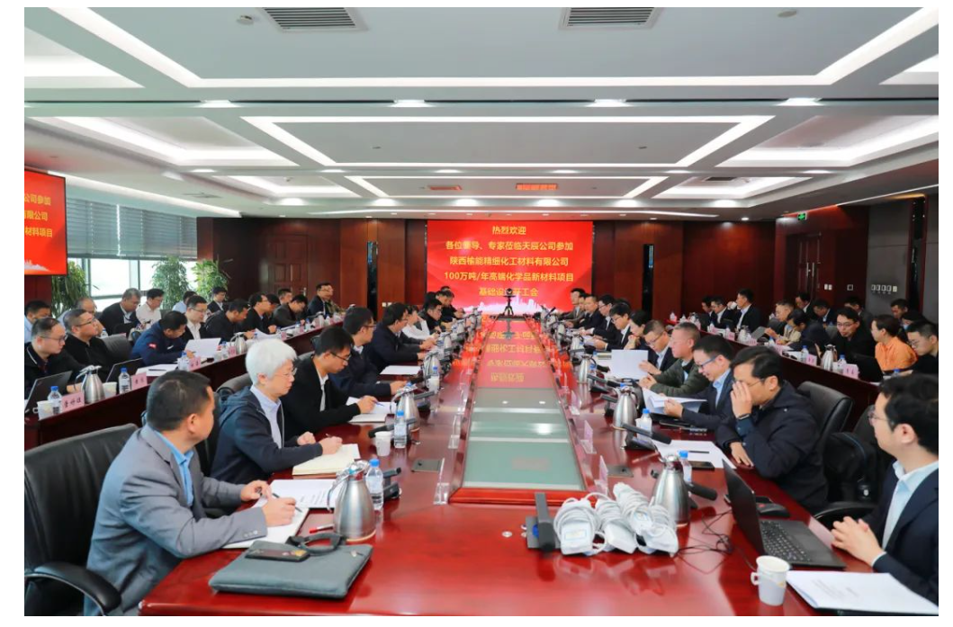 10月26至27日,陕西榆能精细化工材料有限公司100万吨/年高端化学品新材料项目基础设计开工会在天津顺利召开。榆林市高端能源化工基地建设指挥部办公室、榆神工业园区管理委员会相关领导,榆能集团党委委员、副总经理文尧顺,榆能精细化工执行董事、总经理毕亚军,总工程师任国瑜,天辰公司副总经理赵敏伟、总工程师林彬彬出席会议。