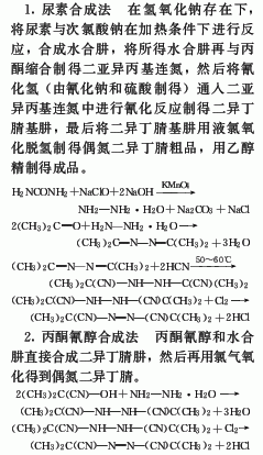 2.用作氯乙烯、醋酸乙烯、丙烯腈等单体聚合时的引发剂,用量在0.04%~0.2%。也可用作聚氯乙烯、聚氨酯、聚乙烯醇、丙烯腈与丁二烯共聚物等橡胶、塑料的发泡剂。还可用作硫化剂、农药和有机合成的中间体。