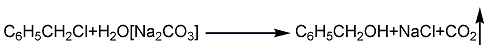 2.以氯化苄为原料,在碱的催化作用下加热水解而得。 3.将氯化苄、碳酸钠和水以一定配比混合,快速搅拌,使油层乳化,边搅拌边将温度升至90℃,当生成的二氧化碳气体不再逸出时,继续升温至101~103℃,使水解反应完全: