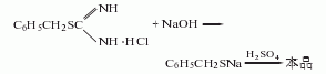 以s-苄基异硫脲盐酸盐与10%氢氧化钠溶液投入反应器中,用直火加热回流2h,进行水解。然后冷却,再用稀酸化,用萃取,萃取液用无水钠干燥,然后滤出干燥剂,回收,剩余物经减压蒸馏,收集98~108℃(2.6664kpa)的馏分,即得成品。
