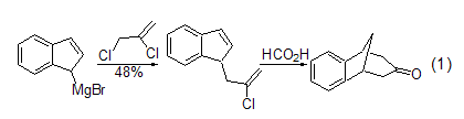 grignard反应  2,3-二氯丙烯与grignard试剂发生烷基化反应[1]。在环酮合成中,可以用97%的甲酸来环化烯烃的烯丙基侧链 (式1)[2]