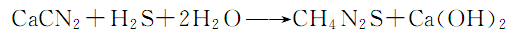 4.先将硫氢化钙与水混合,在搅拌下分次加入氰氨化钙,过程中控制温度不超过70℃: