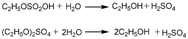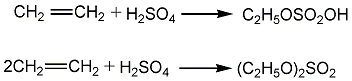 2. 水合法:以乙烯和水为原料,通过加成反应制取。水合法分为间接水合法和直接水合法两种。间接水合法也称酯法,反应分两步进行。先把95-98%的和50-60%的乙烯按2:1(重量比)在塔式反应器吸收反应,60-80℃、0.78-1.96mpa条件下生成酯。