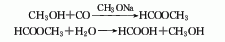 2.甲醇羰基合成法(又称甲酸甲酯法) 甲醇和一氧化碳在催化剂甲醇钠存在下反应,生成甲酸甲酯,然后再经水解生成甲酸和甲醇。甲醇可循环送入甲酸甲酯反应器,甲酸再经精馏即可得到不同规格的产品。