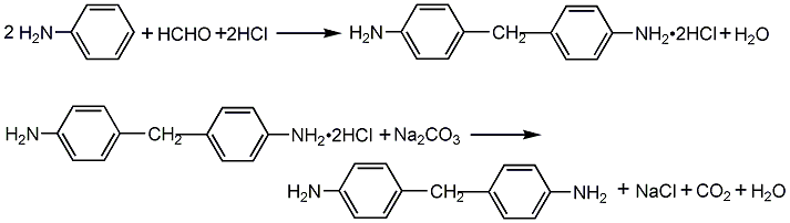 以胺及甲醛为原料,在盐酸中于50-60℃下缩合,再用碳酸钠溶液中和,经分离、蒸馏、结晶而得成品。制备实例:将2mol盐酸、400ml水和2mol新蒸过的胺一起搅拌冷却,于15℃加入1mol40%的甲醛溶液,加热,在55-60℃反应4h。反应产物用碳酸钠溶液中和并碱化。进行水蒸气蒸馏,直至馏分中不再有胺为止。将沉淀物加稍过量的盐酸重新溶解,用稀氨水分步沉淀,将先沉淀的树脂状物滤去,向滤液加入过量氨水,得白色结晶沉淀;过滤,得产品112g,产率57%。进一步提纯可采用乙醇或水重结晶。