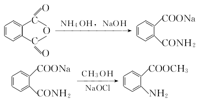 其制备方法是由酐经胺化降解、重氮化、置换、氧化、酸析等步骤而得。1、胺化、降解、酯化制备邻氨基甲酸甲酯。