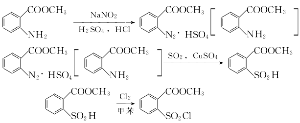 2、重氨化、置换、氯化制备邻磺酰甲酸甲酰
