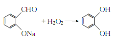 2、在室温下,先将水杨醛与1mol/l 犔的氢氧化钠溶液相混合,然后搅拌下加入稍过量的双氧水,进行反应,温度升高到45~50℃: