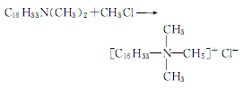 2.在以硅胶为载体的cuo/cr2o3系催化剂的催化下,十六烷醇与二甲胺于一定温度和压力下合成十六烷基二甲基叔胺。再以氢氧钠为催化剂与一氯甲烷反应制得氯化十六烷基三甲基铵。