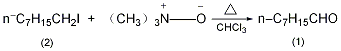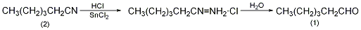 参照上述己醛的合成方法(参考书316页),用辛腈(2)25g(bp87℃/1.67kpa)、无水氯化亚锡57g,200ml无水,用水蒸气蒸馏的方法蒸出辛醛,后减压蒸馏,收集65℃/1.8kpa的馏分,定量的得到辛醛(1)。[20]