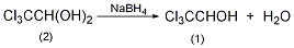 于装有搅拌器、温度计、滴液漏斗的反应瓶中,加入水合三氯乙醛(2)16.5g(0.1mol),水20ml,冰水浴冷却。慢慢滴加硼氢化钠1.3g(0.03mol)溶于20ml冷水配成的溶液。反应放热,控制反应液温度在溶液呈酸性。提取,少量水洗,无水镁干燥。蒸出,而后加热蒸馏,收集151~153℃的馏分,得2,2,2-三氯乙醇(1)9.8g,收率65%。[3]