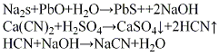 (2)氰熔体法将氰熔体和氧化铅加入萃取槽中,其配料比为(500~700):l,加入氧化铅因生成pbs沉淀,起到脱硫作用。萃取液经沉降,排出清液含nacn 80~90 g/l,在发生器中与浓反应生成氢氰酸气体,经冷凝除水后,进入吸收反应器内用液碱吸收,生成氰化钠。其反应如下: