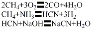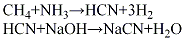 (5)轻油裂解法将轻油和氨按比例在雾化器中混合,预热至280℃,在电弧炉中裂解反应,以石油焦作载体,以氮气作保护气进行密闭防氧化,温度1450℃,反应生成氢氰酸气体,经除尘、冷却后,再经除氨、水洗、吸收、精馏而得纯净的氢氰酸,再用碱液吸收生成氰化钠。其反应如下: